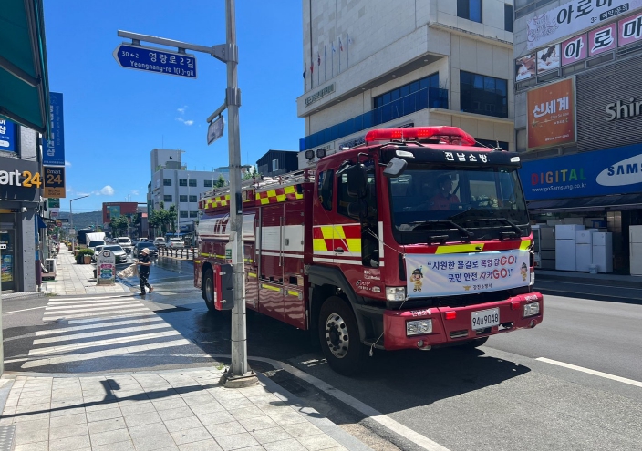 [뉴스노크=김인호 기자] 강진소방서는 연일 이어지는 폭염에 대응하여 도로와 주거지에 대한 소방차 살수 지원 활동을 지속적으로 전개하며 주민 안전 확보와 불쾌지수 저감에 총력을 기울이고 있다.
