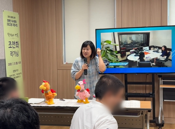이날 조연화 작가는 본인의 저서 '날아라 당당이'를 동화구연 형식으로 들려주며 복지관 이용자들과 진심 어린 교감을 나눴다.