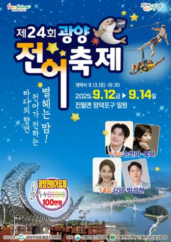 [뉴스노크=김인호 기자] 광양시는 제24회 광양전어축제가 오는 9월 12일부터 14일까지 3일간 “별헤는 밤! 전어가 전하는 바다의 향연”을 주제로 진월면 망덕포구 일원에서 열린다고 5일 밝혔다.