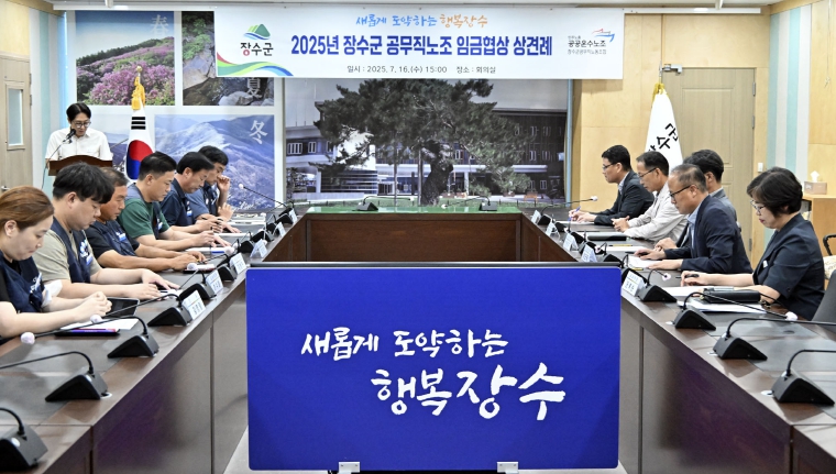 [뉴스노크=김인호 기자] 장수군이 지난 16일 군청 회의실에서 장수군 공무직 노동조합과 2025년도 임금협상을 위한 상견례를 갖고 본격적인 교섭 절차에 돌입했다고 밝혔다.