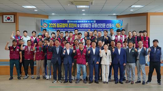[뉴스노크=김인호 기자] 여수시 노사민정협의회와 여수산단 플랜트건설 노사는 8월 26일 여수시 근로자복지회관에서 ‘상생발전 공동선언 선포식’을 열고 생산적 노사문화 정착, 안전한 노동환경 조성, 일자리 창출, 지역사회 공헌을 위해 힘을 모으기로 했다.
