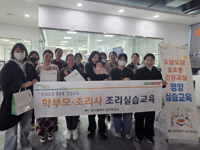 [뉴스노크=김인호 기자] 대구 남구보건소는 지난 24일 유아 건강관리 프로그램 ‘도담도담 꽃초롱 건강가꾸기’사업의 일환으로 관내 유치원 및 어린이집의 학부모 등을 대상으로 조리실습 및 식생활 인식 개선 교육을 진행했다.