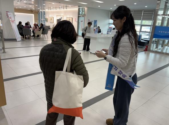 고객 만족 담당자와 인권 담당자가 합동으로 추진했으며, 공단 CS서포터즈단이 함께 참여해 고객 인권·친절 서비스 인식을 담은 홍보 물품을 배부하고 구민과 대면으로 소통하는 시간을 가졌다.