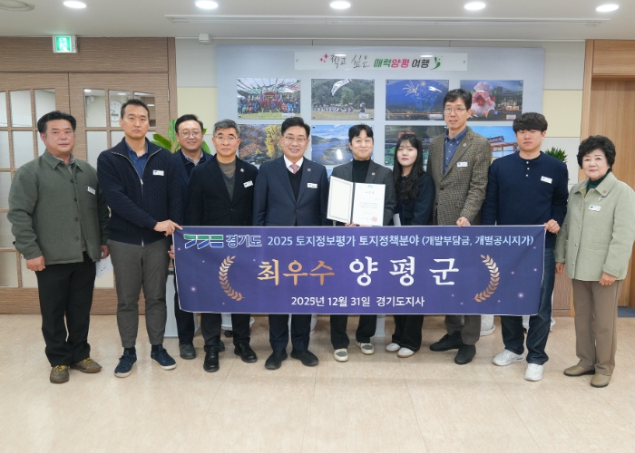 [뉴스노크=김인호 기자] 양평군은 경기도가 주관한 ‘2025년 토지정보 종합평가’에서 토지정책 분야(개발부담금 및 개별공시지가) 최우수 기관으로 선정됐다고 밝혔다.