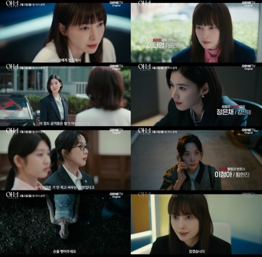 지니 TV 오리지널 드라마 ‘아너 : 그녀들의 법정’은 오는 2월 2일 월요일 밤 10시 지니 TV를 통해 공개되며, ENA를 통해 방송된다.