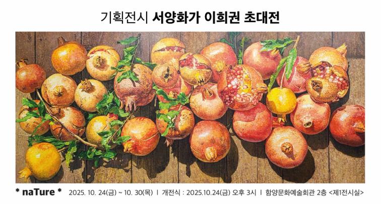 [뉴스노크=김인호 기자] 함양군은 오는 10월 24일부터 30일까지 함양문화예술회관 제1전시실에서 2025년 기획 전시로 서양화가 이희권 작가를 초대해 ‘naTure(네이처)’를 개최한다.