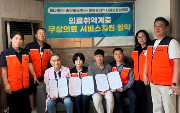 [뉴스노크=김인호 기자] 평택시 송북동 지역사회보장협의체는 지난 9일 하나의원(원장 허성옥) 및 송탄하늘약국과 ‘의료취약계층 무상 의료서비스 지원’을 위한 업무협약(MOU)을 체결했다.