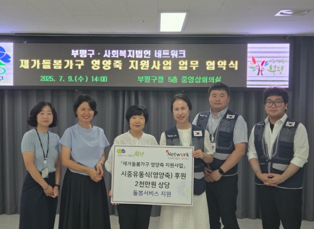 길옥이 복지국장은 “돌봄이 필요한 부평구민을 위해 함께 협업해 주시기로 한 사회복지법인 네트워크에 감사드린다”며 “후원해주신 영양죽이 식사에 어려움이 있는 구민들에게 지원돼 가정에서 건강한 삶을 유지할 수 있도록 통합돌봄사업 추진에 최선의 노력을 다할 것”이라고 말했다.