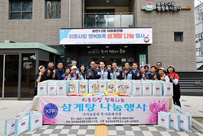 [뉴스노크=김인호 기자] 인천 동구 송현1‧2동 자유총연맹(회장 김송준)은 지난 14일 관내 취약계층을 위한 삼계탕 나눔 행사를 개최했다고 밝혔다.