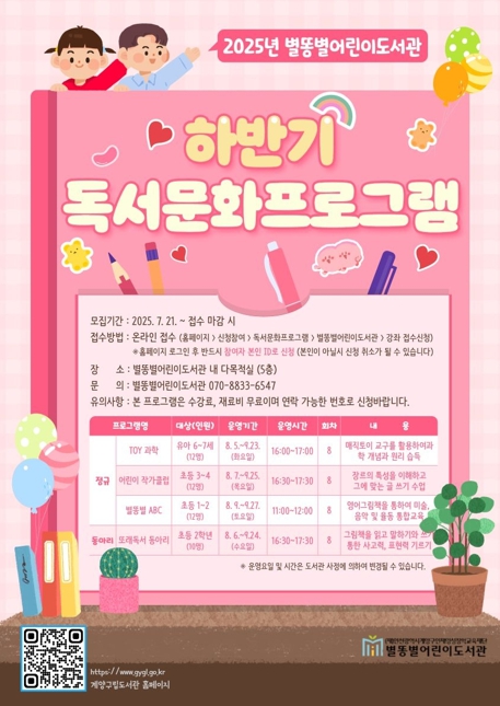 ▲ 별똥별어린이도서관, ‘2025년 하반기 독서문화 프로그램’ 운영 |