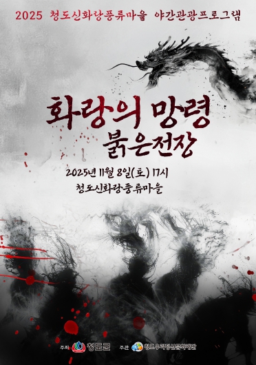 [뉴스노크=김인호 기자] 청도우리정신문화재단(대표이사 기화서)은 오는 11월 8일 오후 5시부터 밤 9시까지, 청도신화랑풍류마을에서 2025 야간관광 프로그램 '화랑의 망령: 붉은전장' 이색 공포체험 프로그램을 운영한다.