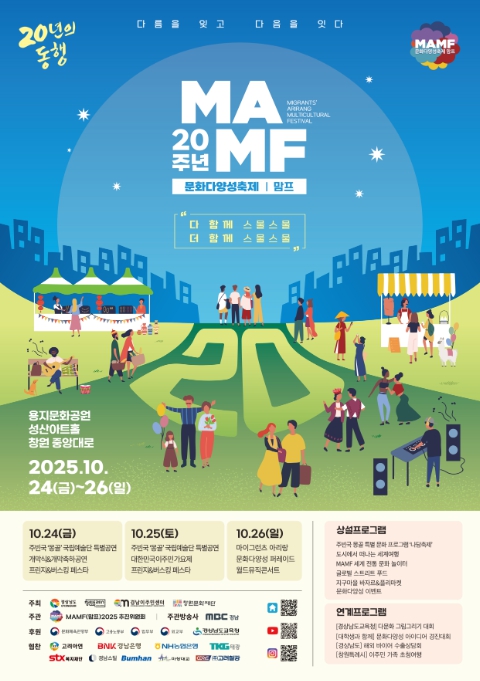 [뉴스노크=김인호 기자] 경상남도는 10월 24일부터 26일까지 3일간 창원 용지문화공원 일원에서 올해로 20회를 맞는 국내 최대 규모의 문화다양성 축제 ‘2025 맘프(MAMF, Migrant’s Arirang Multicultural Festival)’를 개최한다고 밝혔다.