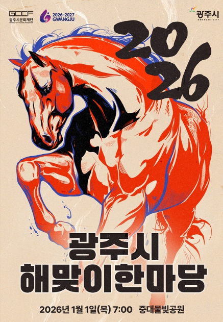 [뉴스노크=김인호 기자] (재)광주시문화재단(대표이사 오세영)은 2026년 병오년(丙午年)의 새해 첫 아침을 광주시민과 함께 맞이하는 '2026 광주시 해맞이 한마당'을 1월 1일 오전 7시 중대물빛공원에서 개최한다고 밝혔다.