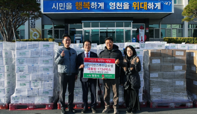 [뉴스노크=김인호 기자] 영천시는 지난 8일 ㈜이안스푸드글로벌이 취약계층 지원을 위해 대나무통밥 1,734박스(1억 2,100만원 상당)를 영천시에 기탁했다고 밝혔다.