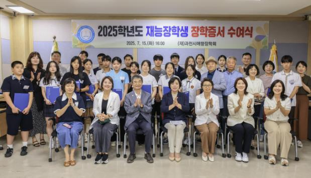 [뉴스노크=김인호 기자] 과천시 애향장학회는 지난 15일 시의회 1층 열린강좌실에서 ‘2025년 재능 장학생 장학증서 수여식’을 열고, 관내 중고등학생 24명과 단체 2팀에 총 3,550만 원의 장학금을 전달했다.