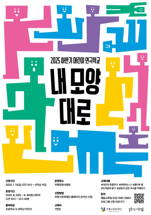 [뉴스노크=김인호 기자] 부평구 문화재단이 다음 달 진행되는 어린이 연극학교 신규 프로그램 ‘내 모양대로’의 참여자를 모집한다고 14일 밝혔다.