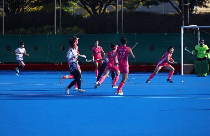 | ▲ KT sports 직장운동경기부 하키팀(분홍색 선수복) 2025 전국체전 동메달(사진 제공 대한하키협회)/2025년도 직장운동경기부 운영 지원 공모 선정 70,000천 원 국비 지원 |