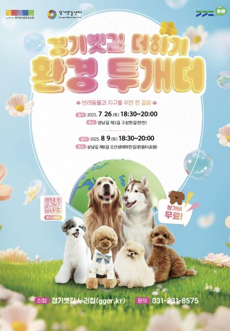 [뉴스노크=김인호 기자] 경기문화재단 경기역사문화유산원이 반려동물과 함께하는 환경정화 행사 ‘경기옛길 더하기, 환경 투개더’를 오는 7월 26일과 8월 9일 두 차례에 걸쳐 개최한다. 이 행사는 역사문화탐방로인 경기옛길을 반려문화와 기후행동 실천의 장으로 확장하고자 마련된 프로그램으로, 반려동물과 함께 길을 걸으며 쓰레기를 줍는 플로깅 활동 중심으로 진행된다.