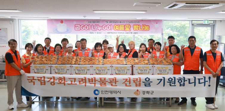 [뉴스노크=김인호 기자] 강화군복지재단(이사장 한석현) 원더풀 복지봉사단(단장 오경숙)은 지난 9일, 대한적십자봉사회 인천광역시협의회(회장 황재철) 회원들과 함께 ‘굽GO! 나누GO! 여름愛 빵 나눔’ 봉사활동을 실시했다고 밝혔다.
