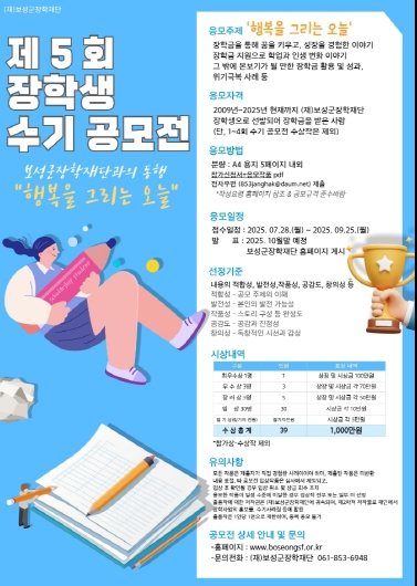▲ 보성군장학재단, ‘제5회 장학생 수기 공모전’ 개최_‘2025년 제5회 장학생 수기공모전’ 포스터 |