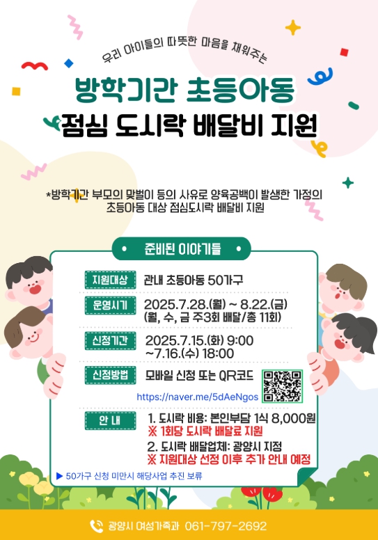 ▲ “자녀 식사 걱정 덜어드립니다” 광양시, 방학 중 도시락 배달비 지원 |