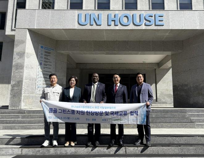 신계용 과천시장은 몽골 울란바토르에 위치한 유니세프 몽골사무소를 찾아 간담회에 참석하고, 아동 권리 실현을 위한 정책 공유 및 향후 협력 방안에 대해 논의했다. 이어 울란바토르에 있는 ‘74번 학교’를 방문해 그린스쿨 프로그램이 적용된 교육환경을 점검하고, 기후변화 대응 및 교육환경 격차 해소의 의미를 되새기며 현지 학생들과 함께 나무심기 활동에도 참여했다.