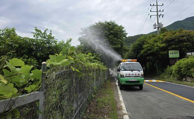 특히 농업기술센터는 지난 6월 24일 과수농가가 밀집한 북면 백둔리 일대에서 ‘돌발해충 공동방제의 날’을 운영했다. 이날 농업기술센터는 군 산림과와 함께 광역살포기를 동원하고 방제요원 15명을 투입해 총 469.8ha(농경지 269.8ha, 인접 산림지 200ha)에 공동방제를 진행했다.