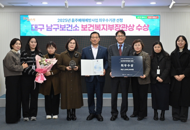 대구 남구보건소가 보건복지부 주관 ‘2025년 음주폐해예방사업 평가’에서 최우수기관으로 선정되어 보건복지부장관상을 수상했다.