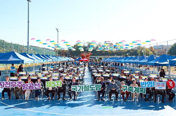 사천시는 행사장을 찾은 면민들에게 내년 상반기 국토부에서 고시 예정인 제5차 국가철도망 구축계획에 사천우주항공선 반영의 필요성을 설명했고, 면민들은 호응과 적극적인 지지를 보냈다.