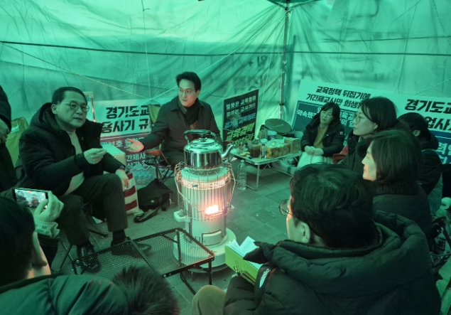 [뉴스노크=김인호 기자] 경기도의회 교육기획위원회 안광률 위원장(더불어민주당, 시흥1)은 27일 오후, 경기도교육청 1층 외부에 설치된 ‘기간제 사서교사 경력 인정 문제 해결 촉구 천막 농성장’을 방문해 교사들의 목소리를 직접 청취하고, 경력 인정 문제에 대한 해법을 논의했다.