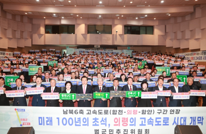 [뉴스노크=김인호 기자] 의령군은 24일 의령군민문화회관에서 ‘남북6축 고속도로 합천–의령–함안 구간 연장 범군민 추진위원회 발대식 및 결의대회’를 열고 고속도로 연장 사업 추진을 공식 선언했다.