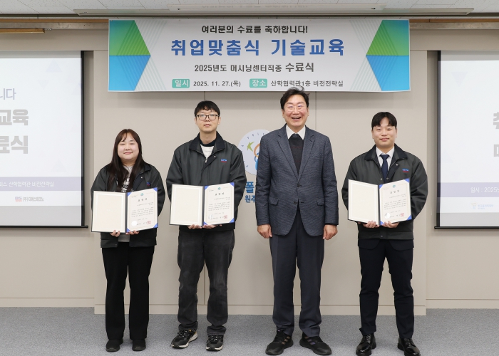 교육생들은 9월 1일부터 11월 27일까지 한국폴리텍대학 원주캠퍼스에서 ‘디에스테크노 취업연계맞춤과정(기계시스템·머시닝센터 직종)’을 이수했으며, 수료생 전원은 ㈜디에스테크노에 취업하게 된다.