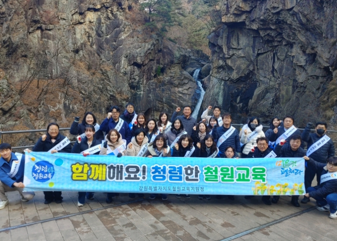또한 직원들은 철원교육지원청에서 삼부연폭포까지 이동하며 플로깅 활동과 자연정화 활동을 함께 진행했다. 이번 활동은 직원 간 협력과 소통을 강화하고 지역 환경 보호에 동참하는 의미 있는 시간이 됐다.