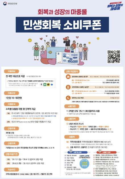시 관계자는 “시민 불편을 최소화하기 위해 온라인 신청을 적극 활용해 달라”며 “소비쿠폰이 지역 소상공인에게 실질적인 도움이 될 수 있도록 철저히 준비하겠다”고 말했다.