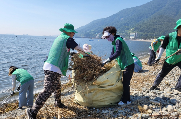 무더운 날씨에도 아랑곳하지 않고 새마을지도자 50여명은 폐목재, 농약통, 폐플라스틱, 스티로폼 부표는 물론 폭우로 유입된 나뭇가지, 초목류까지 다양한 해양쓰레기를 놓치지 않고 수거하며 깨끗한 해변의 모습을 되찾기 위해 구슬땀을 흘렸다.