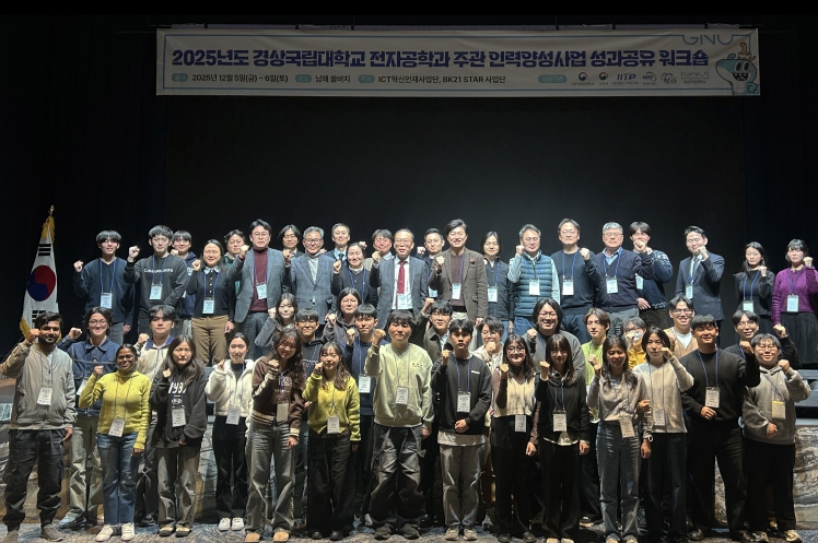 [뉴스노크=김인호 기자] 경상국립대학교 ICT혁신인재사업단과 S2X인공지능기반유무인복합체계교육연구단(이하 BK21 STAR사업단)(양 사업단 단장 이왕상 전자공학부 교수)은 12월 5~6일 쏠비치 남해에서 ‘2025년도 경상국립대학교 전자공학과 주관 인력양성사업 성과공유 워크숍’을 개최했다.