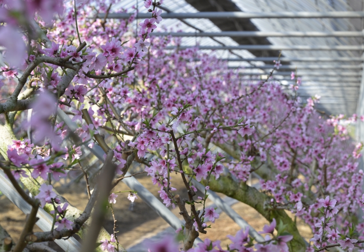 시설복숭아 재배는 휴면이 끝나는 1월부터 생육 단계별 온·습도 관리와 인공수분 등 정밀한 기술이 요구된다.