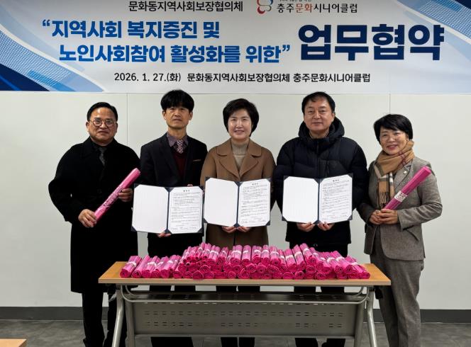 [뉴스노크=김인호 기자] 충주문화시니어클럽과 문화동 지역사회보장협의체가 27일 지역사회 복지 증진과 노인 사회참여 활성화를 위한 업무협약을 체결했다고 밝혔다.