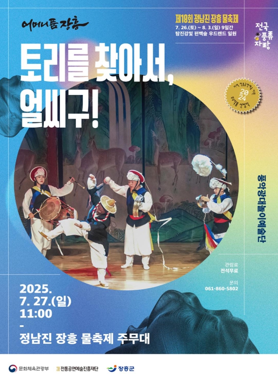 [뉴스노크=김인호 기자] 장흥군은 7월 27일 오전11시부터 물축제 주무대에서 ‘토리를 찾아서, 얼씨구!’ 공연을 개최한다고 밝혔다.