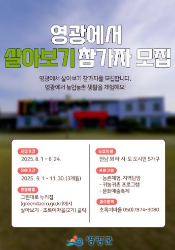 ▲ 영광군, '2025년 영광에서 살아보기' 2기 참가자 모집 |