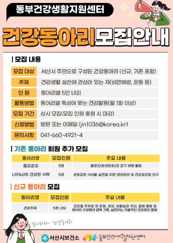 | ▲ 서산시 동부건강생활지원센터 건강동아리 모집 공고문 |