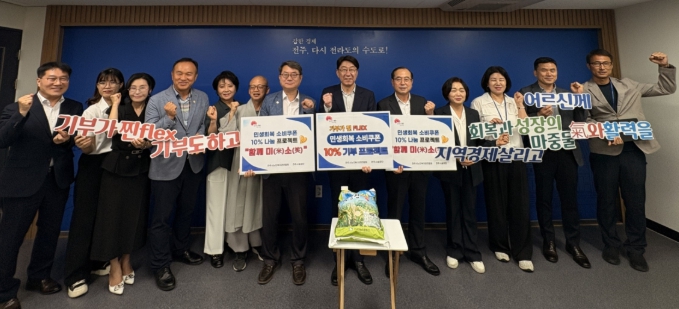 ▲ 민생소비쿠폰 10% 나눔 프로젝트 ‘전주함께미소’ 전달식 |