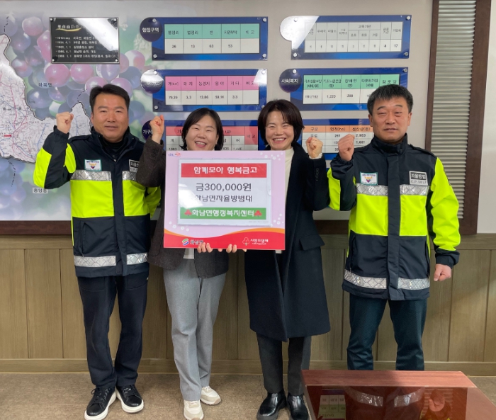 이날 전달된 성금은 ‘함께모아 행복금고’에 적립돼, 화남면 관내 지역 특성에 맞는 맞춤형 특화사업비로 활용되거나 복지사각지대 및 취약계층을 위한 긴급구호비로 지원될 예정이다.