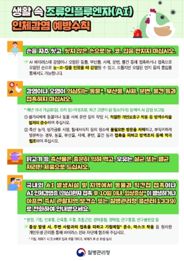 | ▲ 생활 속 조류인플루엔자(AI) 인체감염 예방수칙 안내문. |