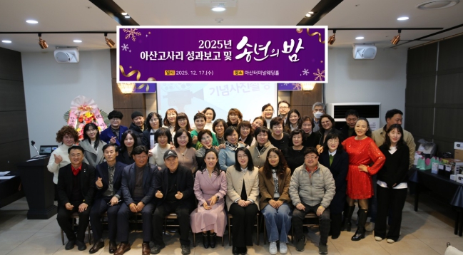 [뉴스노크=김인호 기자] 고령화사회를 이롭게 하는 충남여성연합회 아산지부(회장 고윤경, 이하 아산고사리)는 지난 17일 아산터미널웨딩홀에서 한 해의 활동을 마무리하는 송년회를 열고, 이웃과 함께한 나눔의 시간을 되돌아보며 새로운 도약을 다짐했다.