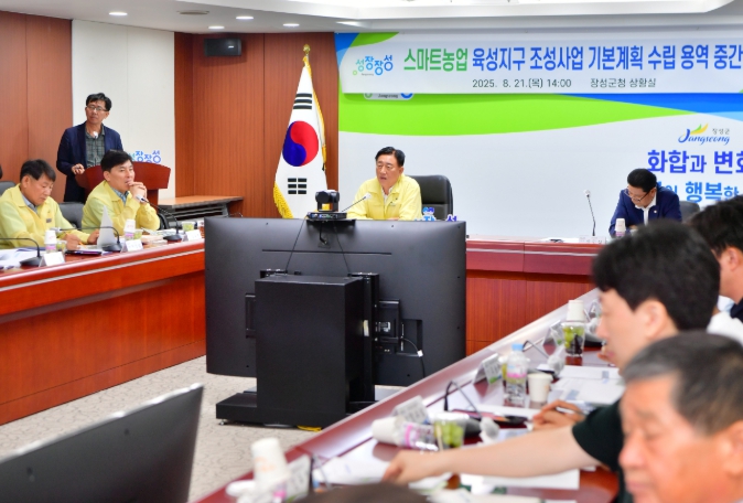 [뉴스노크=김인호 기자] 장성군이 최근 군청 상황실에서 ‘스마트농업 육성지구 조성사업 기본계획 수립용역 중간보고회’를 열었다.