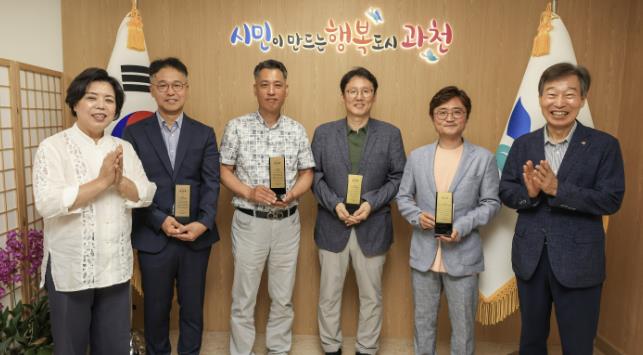 [뉴스노크=김인호 기자] 과천시는 지난 9일 시청 시장실에서 과천지식정보타운 기업협의회로부터 기업지원과 교통환경 개선에 기여한 공무원 4명이 감사패를 받았다고 밝혔다.