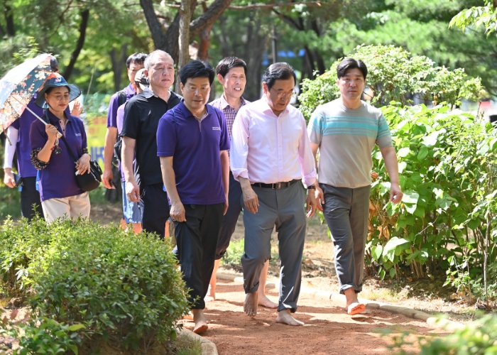 첫방문지인 신장근린1호공원에서 이 시장은 건식 황톳길 100m와 황토족탕 20㎡를 직접 체험하고, 현장을 찾은 주민들과 대화를 나누며 시설에 대한 의견을 경청했다. 특히 원도심에도 이러한 생활 인프라가 조성된 점에 주목하며, 신도시뿐 아니라 원도심을 아우르는 균형 잡힌 도시정책이 시민 행복의 기반이 된다고 강조했다.