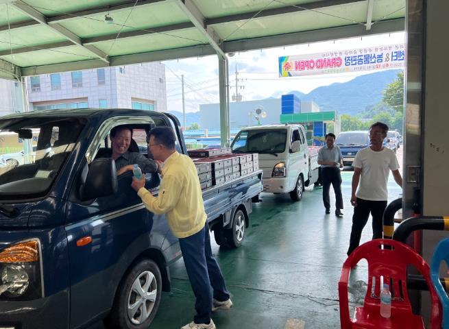 ▲ 청도군 청도읍, 복숭아 출하 농가에 시원한 생수 전달 |