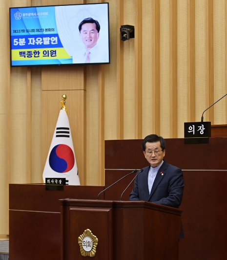 [뉴스노크=김인호 기자] 광주 서구의회 백종한 의원(화정3동, 화정4동, 풍암동)이 23일 제337회 임시회 제2차 본회의에서 5분자유발언을 통해 재난·안전·민생·복지 현장에서 근무해 온 공직자들의 노고를 치하했다.